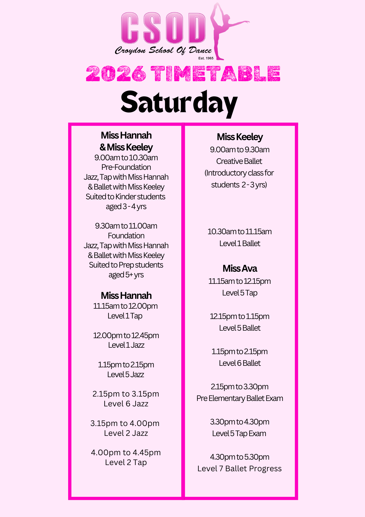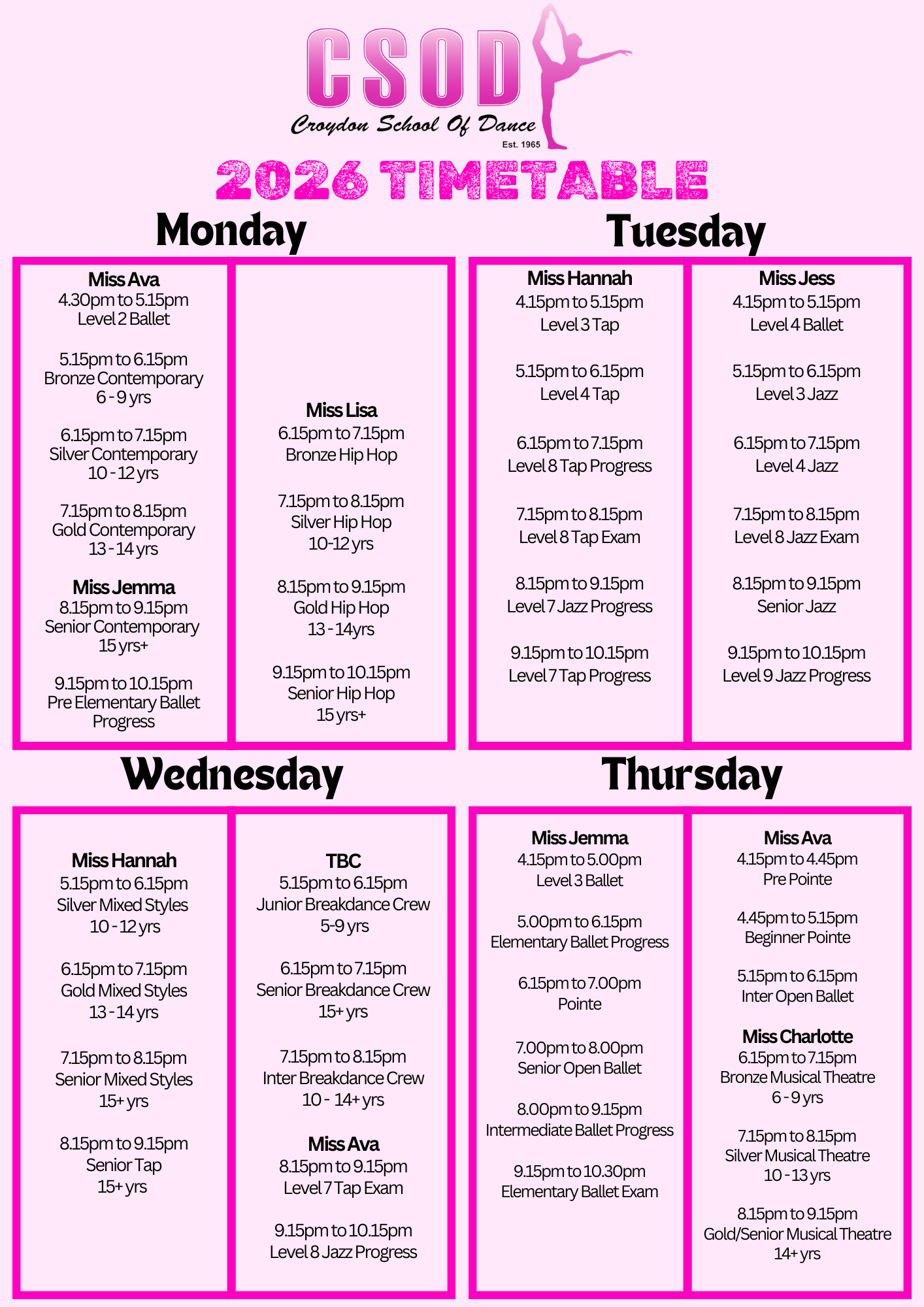 2026 Timetable